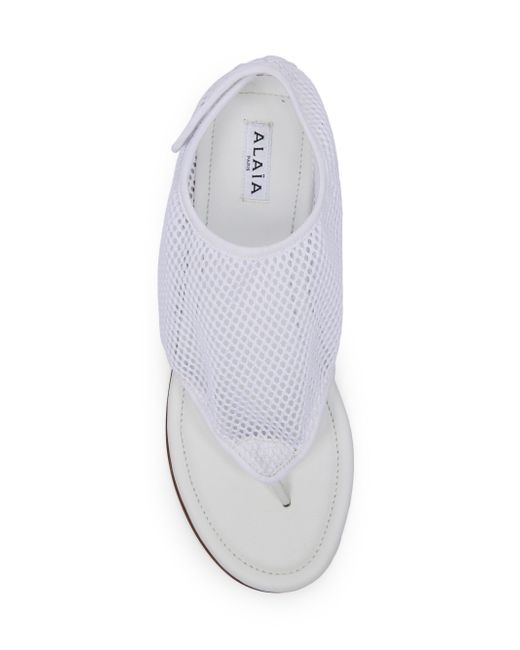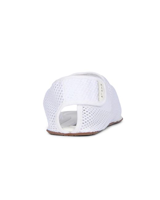 These sandals from Alaïa, crafted of mesh fabric, are designed with an open toe, a back hook-and-loop closure, and a logo patch. Open toe Back hook-and-loop closure Polyamide/leather upper Leather lining Rubber sole Made in Italy ABOUT THE BRAND A trained sculptor, Tunisian designer Azzedine Alaïa presented his first collection in 1981 after years of creating for others. Revered for his impeccable craftsmanship and signature fit-and-flare dresses, Alaïa's goal was to make women feel their best. With Pieter Mulier now at the helm, the label's precision is exemplified by timeless ready-to-wear and laser-cut accessories. Women's Shoes - Advanced Women's Designe > Alaïa > Saks Fifth Avenue > Barneys. Alaïa. Color: Blanc Optique. Size: 6.