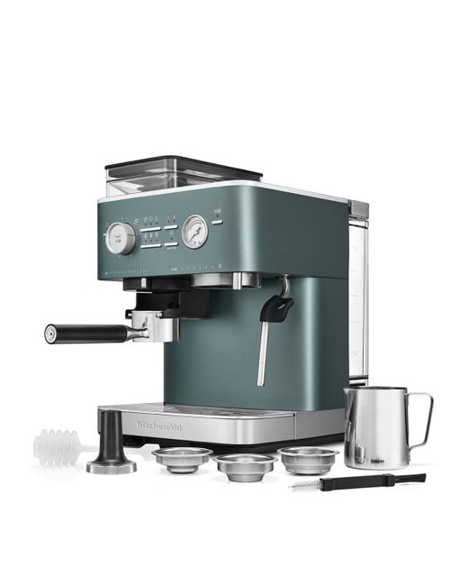 Curiously explore the world of espressos with KitchenAid's Semi Automatic Espresso Machine and Burr Grinder, designed to integrate into your kitchen space. Discover 15 different grind-size options, while the burr grinder - a propeller-like blade - is easily adjusted to achieve seven finer grind sizes.