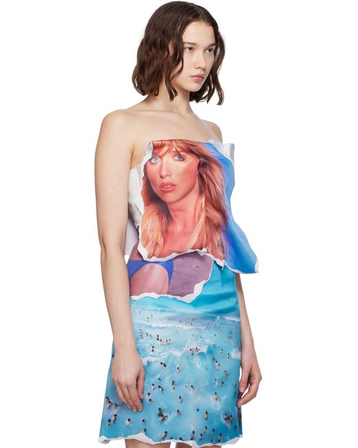 Double-faced polyester satin top. Raw edges throughout. · Straight neck · Coated twill overlay with graphic printed at front · Concealed hook-eye fastening at back Supplier color: Print