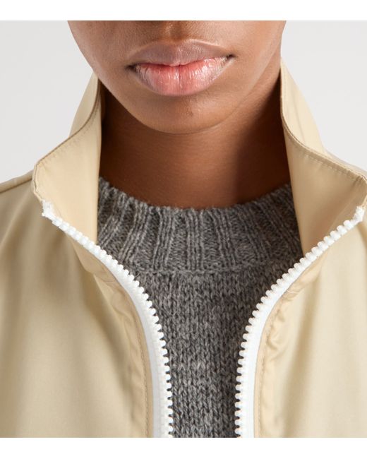 Prada's re-nylon fabric has become a signature of the brand, garnering attention for its contemporary fashion-forwardness and alignment with sustainability. It's the defining feature of this blouson jacket, emulating the classic raincoat with elasticated trims, abundance of pockets and, of course, the Italian House's inimitable Triangle.