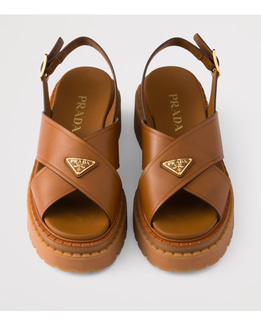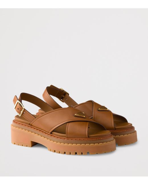 Prada's chunky soles have swiftly become the go-to of a generation, blending the playfulness of early ‘90s style with a contemporary sportswear edge. These leather sandals embody the look with ease, finished with the House's signature gold-tone enamel Triangle logo on the vamp for a punch of luxury.