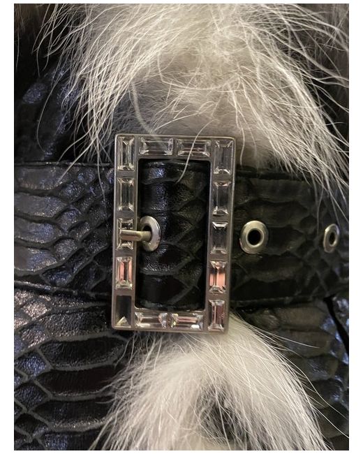 Absolutely stunning designer leather jacket which has a snakeprint effect leather. It has a very large cream, real fur collar. It has a belt with large diamanté belt but unfortunately there is one diamanté missing which I have shown. I'm selling the jacket for a friend & unfortunately she took the label out because it rubbed but then never wore it but can't remember the designer!! It does have a spare button attached to the label inside. Label says 38, I would say it would fit 8-10.