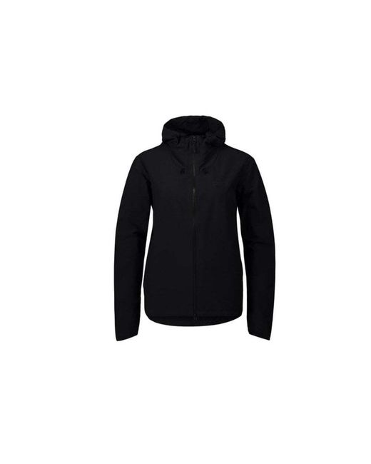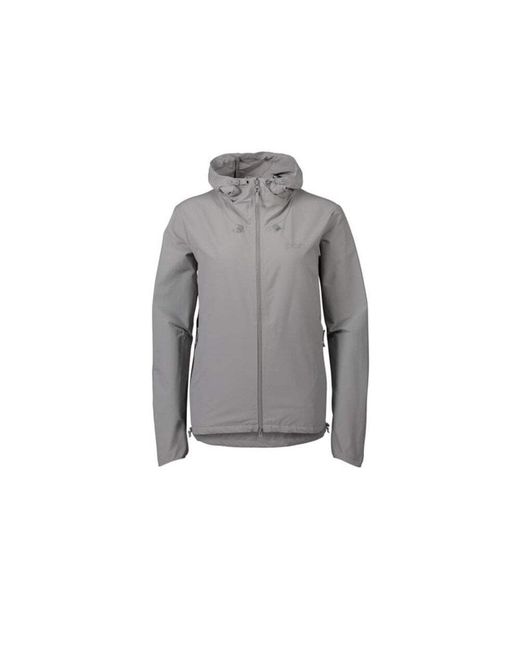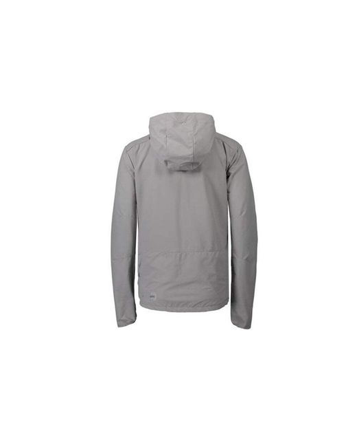 Soft, stretchy and quiet polyamide fabric. Two-way full-length zipper. The hood can be rolled up and secured with a reflective hood lock. Reflective details on front and back heighten visibility. Two zipped hand pockets.
