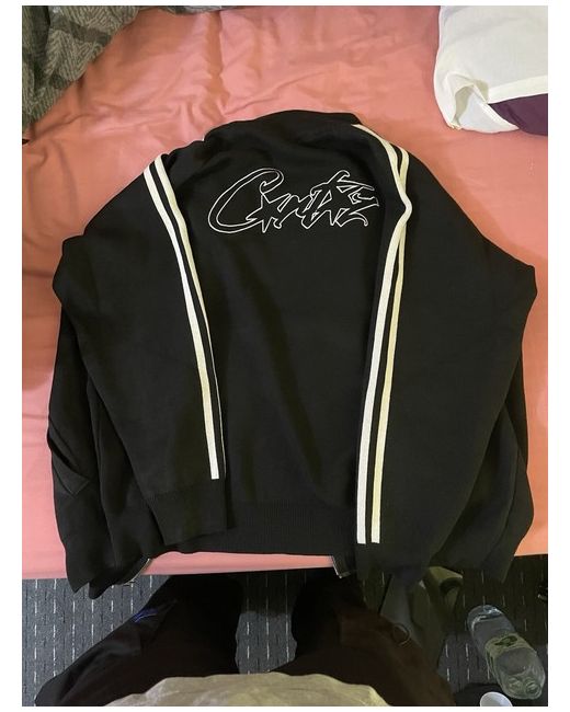 This stylish black jacket from Corteiz is the perfect addition to any wardrobe. Made from 100% wool, it is sure to keep you warm on those chilly days. The jacket is designed for unisex adults in size L, and features a basic style that is both versatile and timeless. Whether you're running errands or heading out for a night on the town, this Cortina jacket is the perfect choice. With its classic design and high-quality materials, you'll look and feel great no matter where you go.