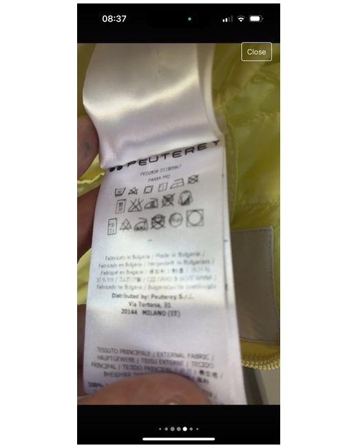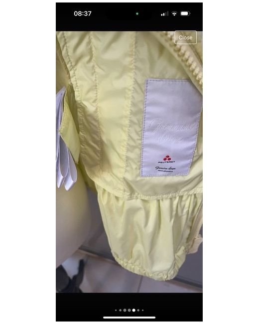 Genuine peuterey down Gorgeous mellow yellow lightweight jacket with two side pockets and unique extra layer at bottom of jacket with toggles to pull to required tightness. Genuine down padding. This jacket is pure luxury made with quality materials and usually insanely expensive (2nd to last photo to show similar for price) so grab yourself an absolute bargain! Pit to pit 18” top of shoulder to top of shoulder 15” across waist 16”. Peuterey size 42 converts to uk 10 (see photo for reference). BNWT