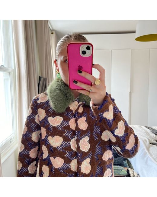 BNWOT Kylie Moss Flower Faux Fur Coat Small UK 8-10 645