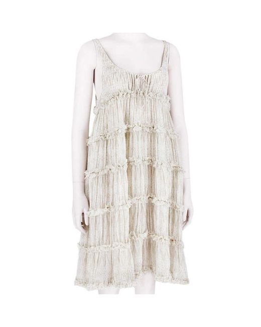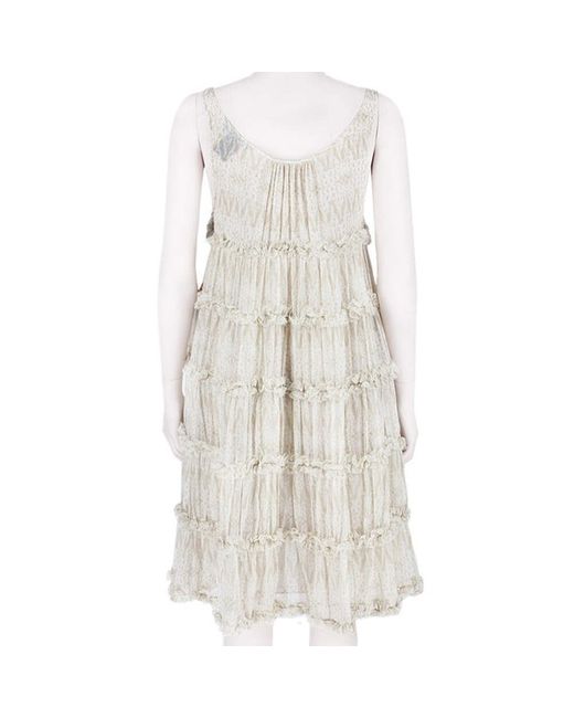 Thomas Wylde Beige White Butterfly Print Silk Chiffon Babydoll Dress. A beautiful and ethereal butterfly print dress in floaty silk chiffon by Thomas Wylde. Colour: Beige and white. © Renascence. Elie Saab Earring.