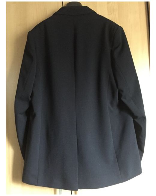 Double breasted tailored jacket with besom pockets and straight fit. Fully lined with lightly padded shoulders in Italian wool twill stretch.