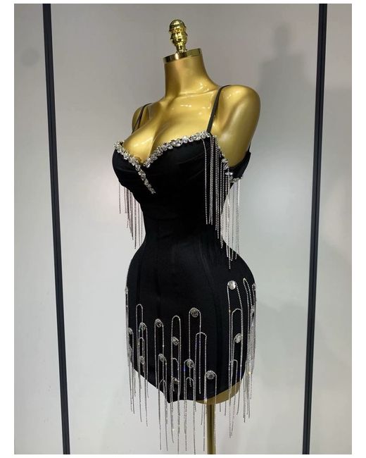 Sling Backless Diamonds Chain Bodycon Bandage Dress Elegant Luxury
