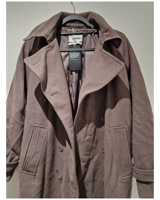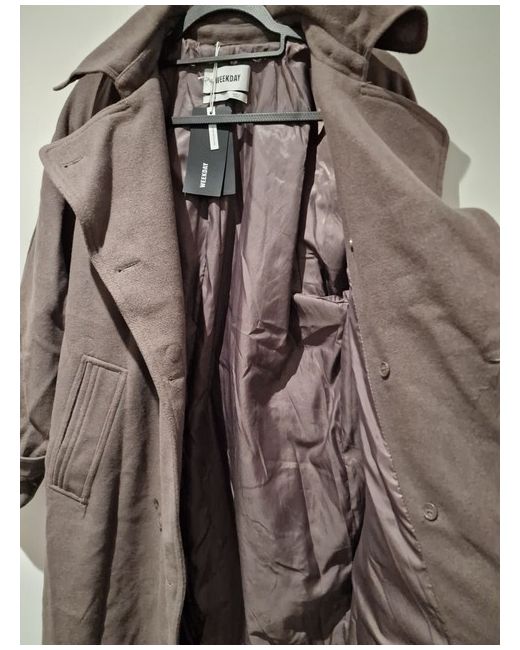 Weekday Travis Wool Trench Ladies Coat Dark Grey/Brown Colour, Oversized, Small Size