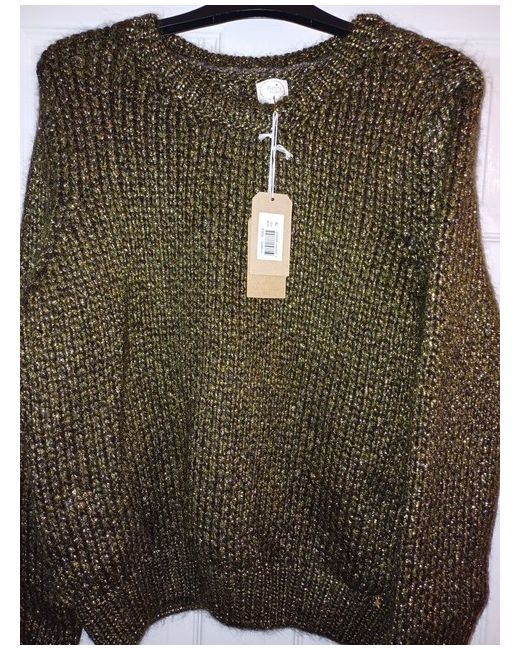 A beautiful metallic gold sparkle, medium-weight chunky jumper by Des Petits Hauts. A lovely olive green colour with all-over gold sparkle. DPH size T2. New with tags.