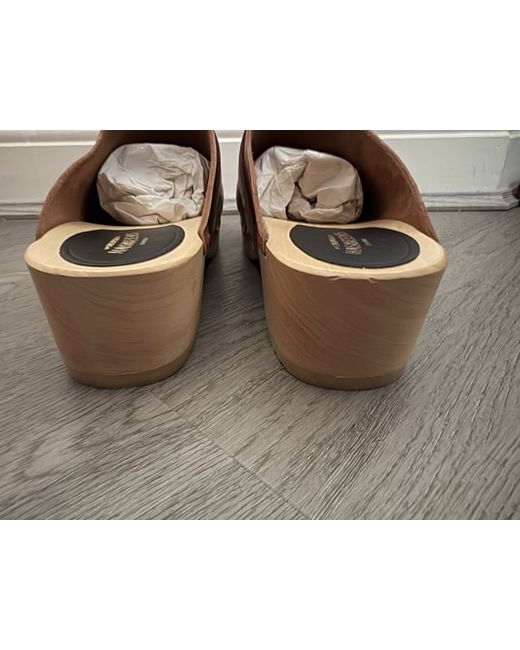New in box. Box does have some wear. Crafted with care in Sweden, these Swedish Hasbeens Swedish Husband clogs are a timeless addition to any wardrobe. The cognac leather upper brings a classic, sophisticated look, while the slip-on style ensures ease of wear. Perfect for women who appreciate both comfort and style, these clogs are versatile enough to carry them through all seasons - from the bloom of spring to the crisp of autumn. Offered in a UK shoe size 7 (EU size 40), these clogs boast durability and a chic design that complements a wide range of outfits. Whether you're stepping out for a casual day or dressing up for an evening event, these Swedish Hasbeens clogs are sure to make a statement without compromising on comfort.