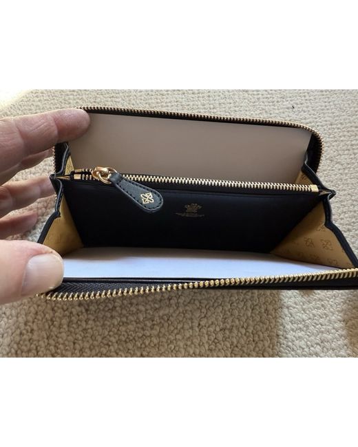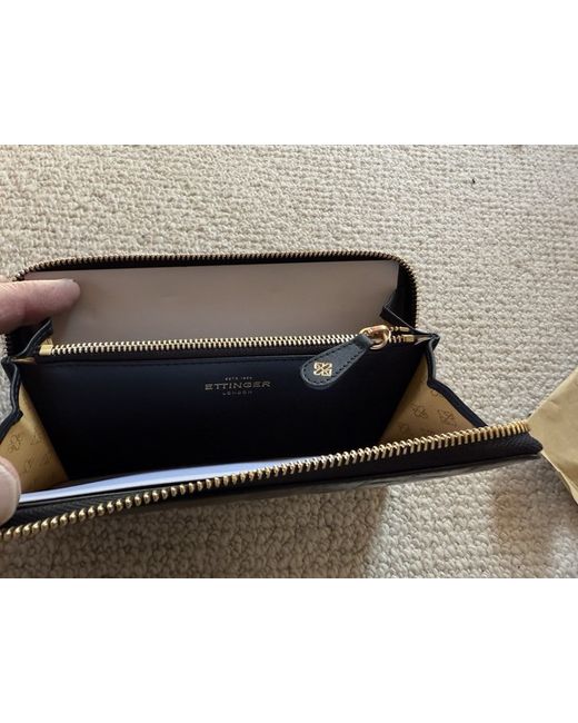 There is a fine mother purse from the renowned Ettinger leather corporation founded in 1934. This superb elegant purse has a cold coloured zip with Clean. Lava handle opens on three sides to reveal to in a side pockets returning the original card. The inner middle section is zipped with a netting good logo tag And opening the zip. The middle pocket is lined with adding the logo lining. The Royal seal is situated on the side of the inner wallet with the name Ettinger embossed in gold on the other side this beautiful piece of accessory is a must for any elegant person. It is new but Tax will come very well wrapped