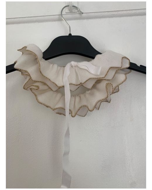 Alex Gore Browne knitted ruffle collar. Wisp White (AGB) with gold trim. Unworn. New without tags. Beautiful, stylish one size adjustable collar with ribbon bow worn at the back. Cleverly transforms day to night wear. A useful addition to any wardrobe. Regret no returns. Postage to UK only.