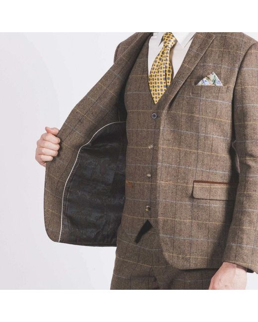 Arthur Brown Tweed Jacket The jacket is a 2-button style with Notch lapel and side vents. Features a vibrant paisley lining with contrast piping over the pockets and lapels. The jacket is a 2-button style with Notch lapel and side vents.