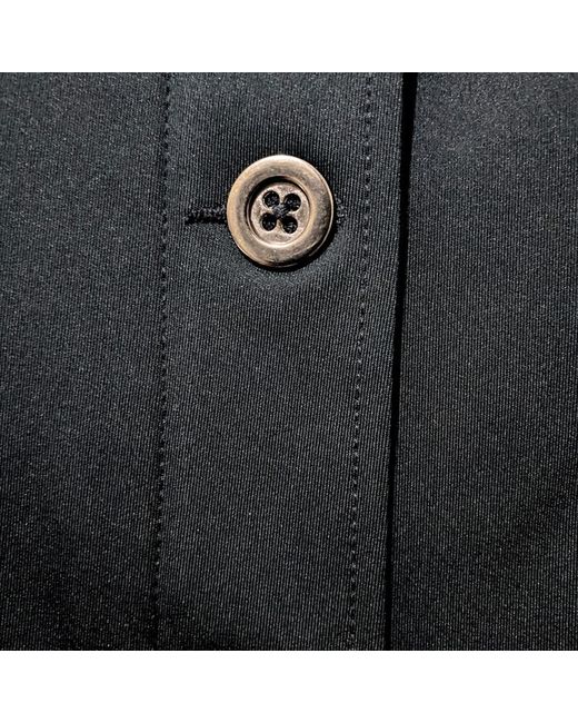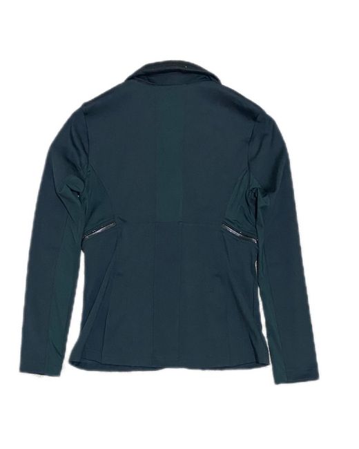 In a striking dark green with blue accents and black glittery details, it has a sleek 4-button front with hidden zip closure.
