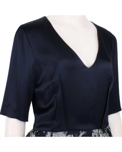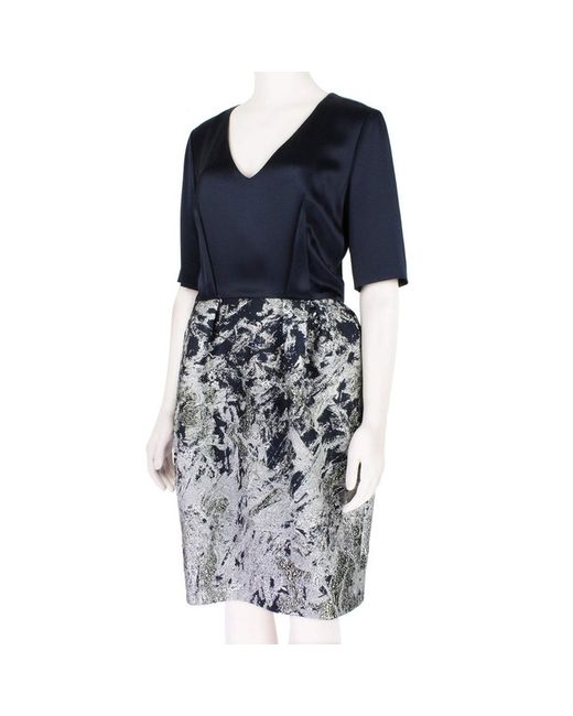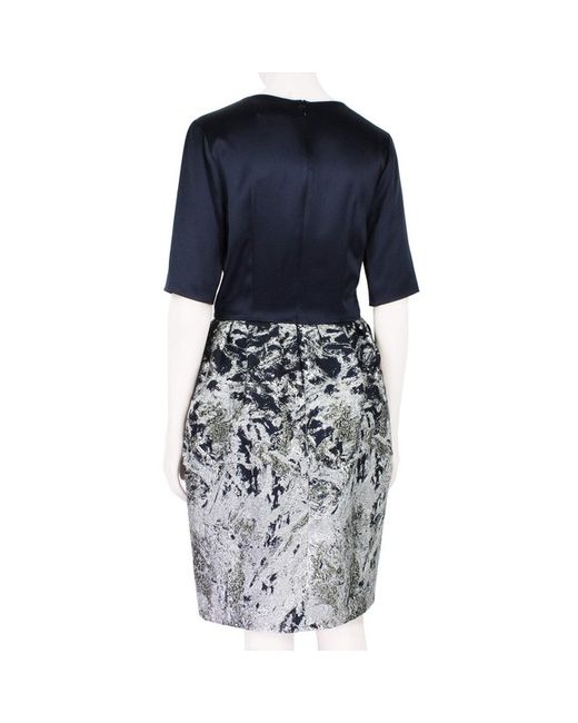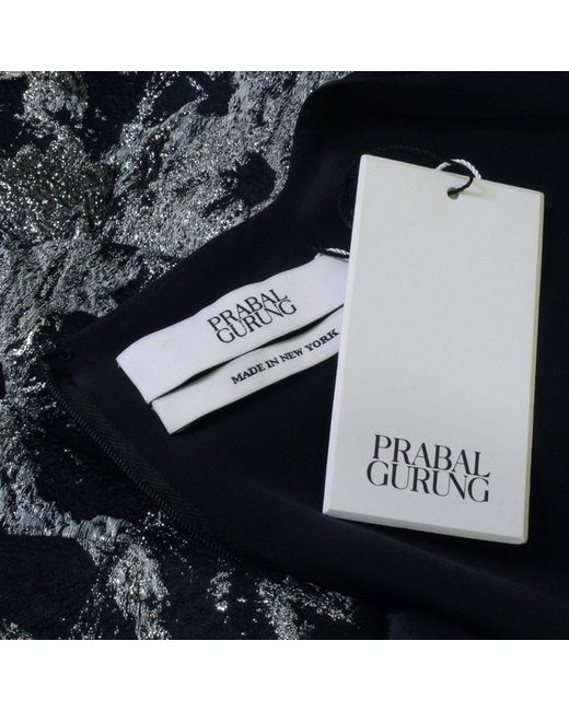 Prabal Gurung Dress Prabal Gurung Midnight Blue Satin Silver Jacquard Bubble Skirt Dress Made in USAColour: Midnight blue and silverMaterial: 48% polyester, 18% nylon, 18% acrylic, 9% silk, 7% wool. Lining 100% silk.