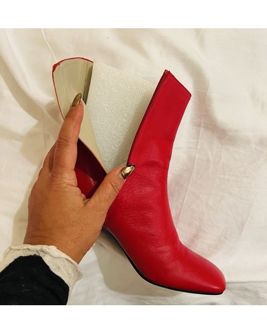 Elevate your style with these stunning red leather boots from 1. STATE. Perfect for any fashion-forward woman, these boots come in a size 7 and feature a sleek bootie style that will complement any outfit. The upper material is made of high-quality leather, ensuring durability and comfort with every step. These boots are perfect for any occasion, whether you're heading to the office or out for a night on the town. The character of the boots is bold and confident, making them a great addition to any wardrobe. So why wait? Add these beautiful boots to your shoe collection today and step out in style!