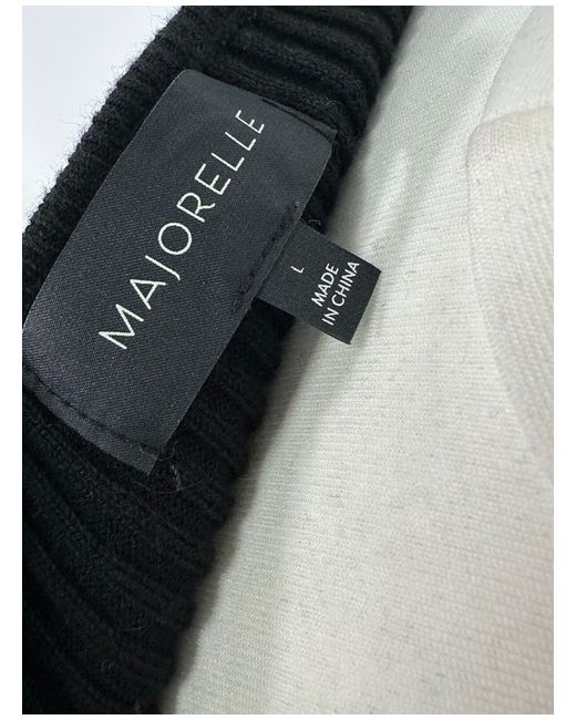This is a Majorelle Salone Sweater in black, featuring a sweetheart neckline and long sleeves. Made from ribbed fabric with a ruched bust detail, the sweater top is of a Regular fit and size Large. The material composition is 50% cotton, 30% viscose, and 20% nylon.