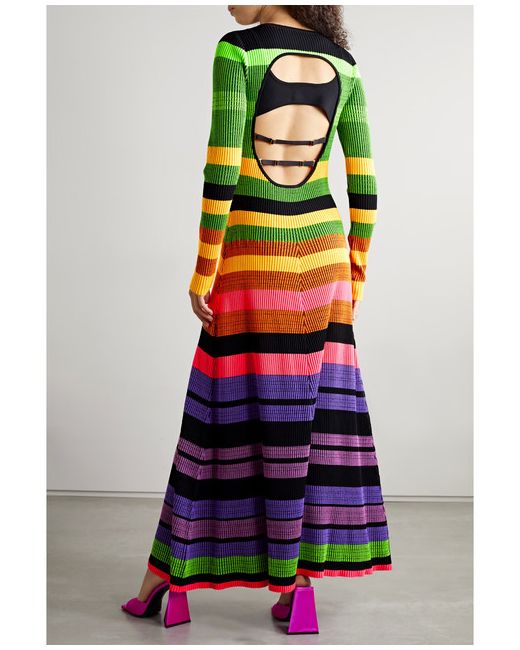 Open-back Striped Ribbed-knit Maxi Dress