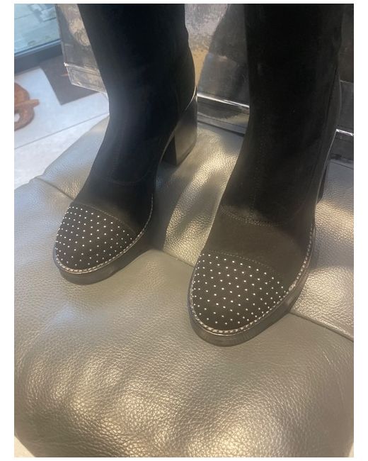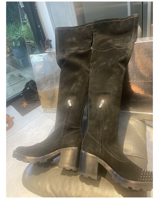 The boots feature a sumptuous suede outsole, providing a luxurious feel with every step. In UK size 7, these boots cater to both fashion-forwardness and practicality. Whether you're dressing up for an occasion or simply looking to add an edge to your casual ensemble, these boots are sure to be a go-to in your shoe rotation.