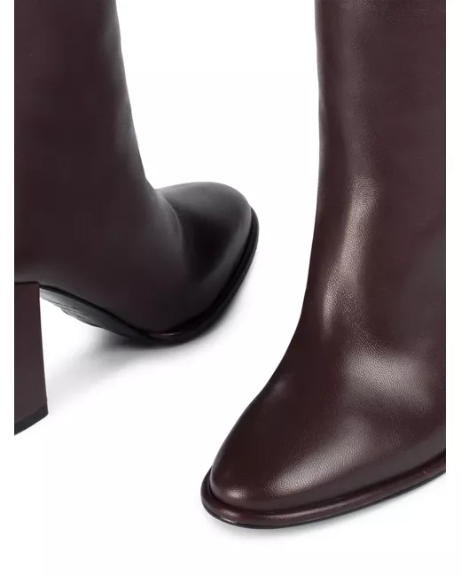 dark brown smooth finish almond toe block heel knee-high