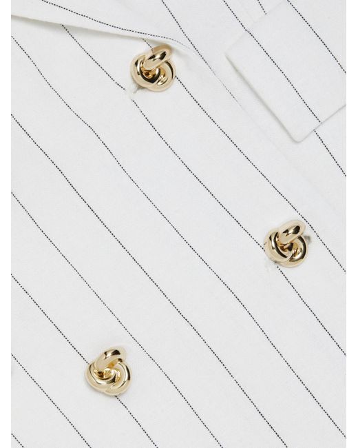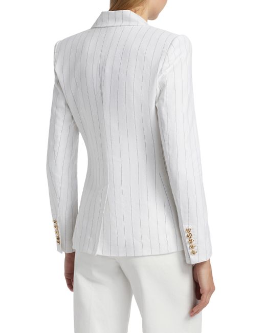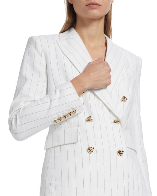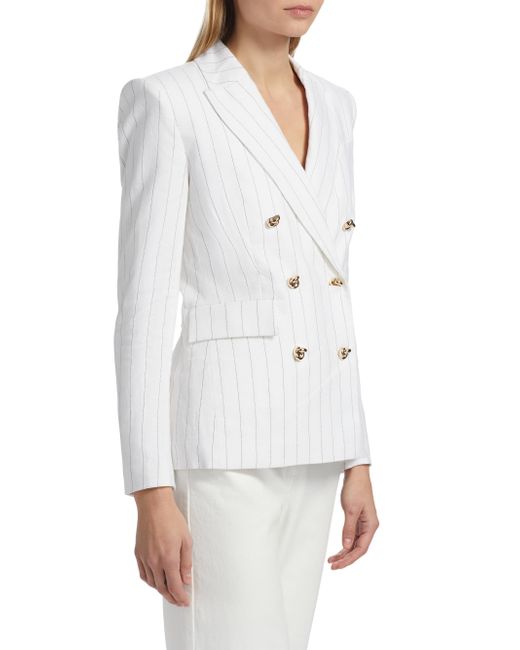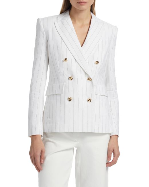Generation Love's Arielle double-breasted blazer is crafted of a pinstriped linen blend and styeld with goldtone buttons. Notched lapels Long sleeves, button cuffs Chest welt pocket Side flap pockets Double-breasted closure 55% linen/45% rayon Hand wash Imported SIZE & FIT About 26.25" from shoulder to hem Model measurements: 5'10" tall Model is wearing a US size Small. Contemporary Sportswear - Casual Separates > Generation Love > Saks Fifth Avenue > Barneys. Generation Love. Color: White Black Pinstripe. Size: XS.