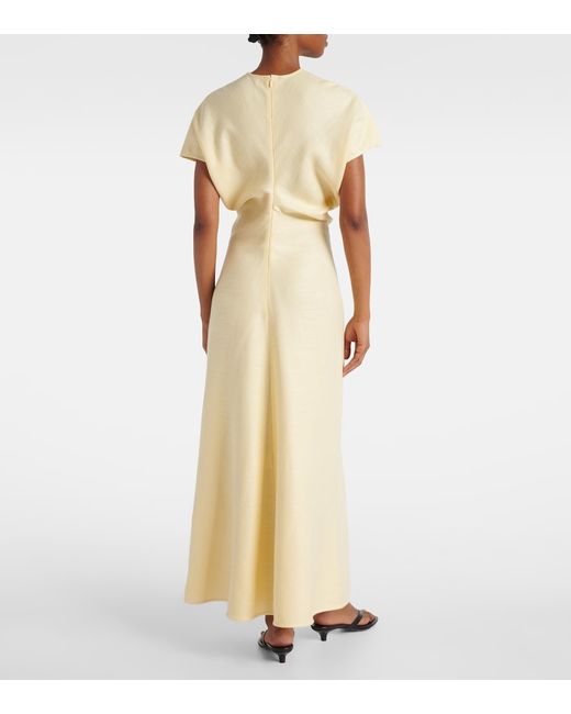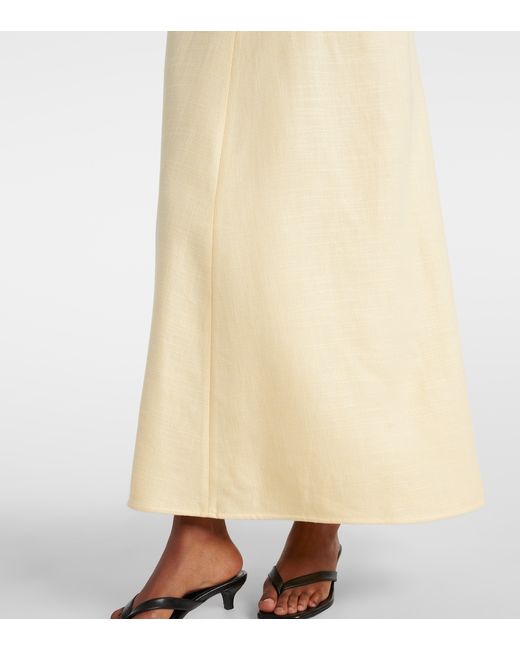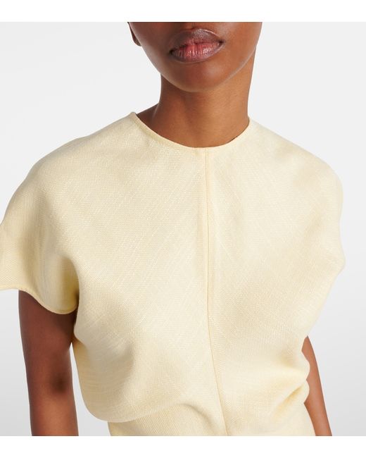 Material: 67% viscose, 24% linen, 9% cotton. Care instructions: dry clean. Made in Portugal. Designer color name: Straw. Item color: yellow. Closure: zipped back.