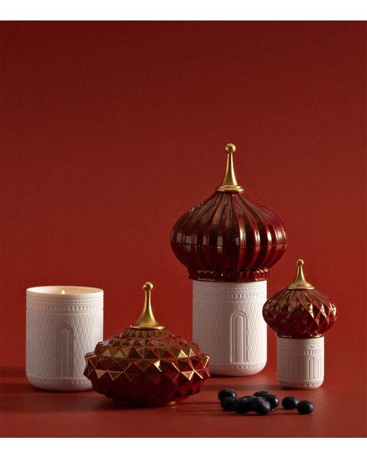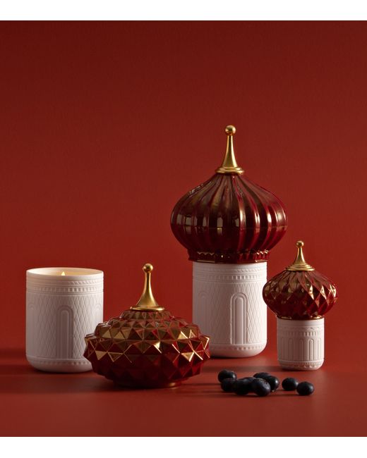 The 1001 Nights collection from Lladró is inspired by exciting fairy tales from One Thousand and One Nights. Expertly scented with cassis, lotus flower and frankincense, this hand-etched candle perfectly harmonises its fruity undercurrents, while the dome is decorated with a 22-karat gold lustre pinnacle making it a stunning piece that doubles as an objet d'art once the wax runs out.