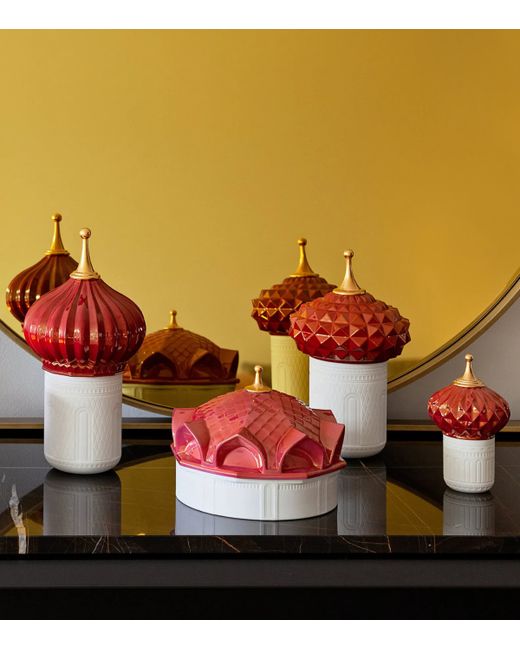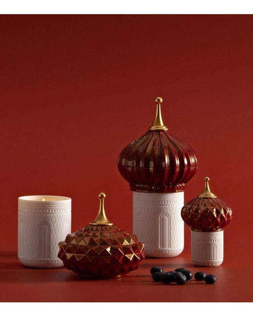 The 1001 Nights collection from Lladró is inspired by exciting stories from One Thousand and One Nights. Expertly scented with cassis, lotus flower and frankincense, this hand-etched candle perfectly harmonises its fruity undercurrents, while the dome is decorated with a 22-karat gold lustre pinnacle making it a stunning piece that doubles as an objet d'art once the wax runs out.