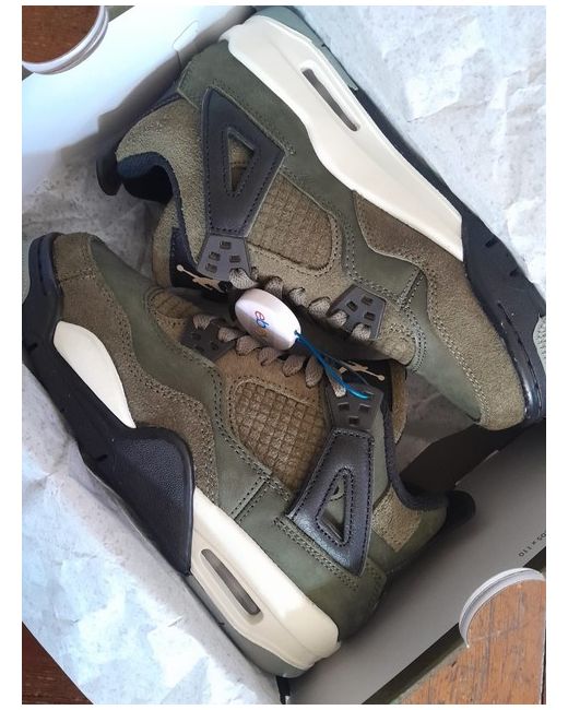 womens Air Jordan's size 4 in Olive green. Never been worn, still in the box with authentication tag on. Perfect condition!