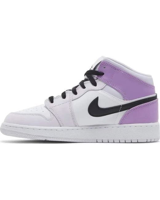 Jordan 1 Mid Barely Grape (GS) Introducing the Jordan 1 Mid Barely Grape (GS), a sleek and stylish addition to the Jordan 1 Mid range. This shoe features a beautiful grape purple hue that is sure to turn heads wherever you go.