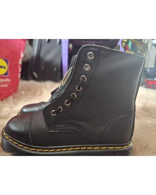 The Dr Marten Sinclair Boots in size 6 are stylish and versatile ankle boots perfect for casual occasions. Made from black leather with a round toe and zip closure, these boots feature a durable rubber outsole suitable for winter wear. With the iconic Dr. Martens brand and standard shoe width, these boots are a timeless addition to any woman's shoe collection. Perfect for adding a touch of edgy style to any outfit, these boots are a wardrobe essential for any fashion-forward individual.