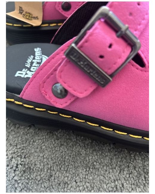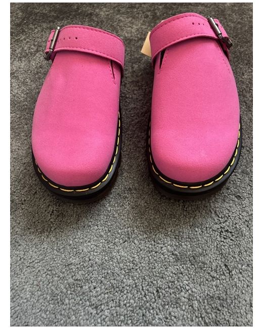 The Doc Dr Martens Zebzag Suede Pink Slingback Platform Mules in UK size 5.5 are a stylish and comfortable choice for casual occasions. With a low heel height and non-slip features, these sandals are perfect for the summer and spring seasons. Made with high-quality suede and leather materials, these pink mules showcase the iconic Dr. Martens logo and are customised to fit UK size 5.5. Designed with a slip-on closure and slingback style, these mules are a must-have addition to any woman's shoe collection. Made in England, these Dr. Martens sandals offer both fashion and quality for the modern woman.