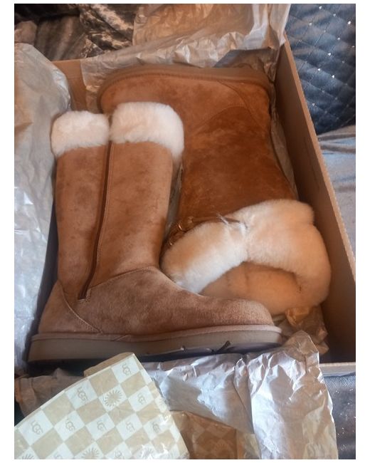 These UGG Australia brown long boots in UK size 7 are the perfect choice for a casual winter outfit. Made from suede with a rubber outsole, they feature a round toe shape and standard shoe width for ultimate comfort. The stylish and classic design makes them a versatile option for any wardrobe, and the brand's reputation for quality ensures durability and style. Whether you're running errands or enjoying a leisurely day out, these UGG Australia boots are a must-have for any woman looking for a chic and practical footwear option. these boots are brand new .the box is not perfect as it's been sitting in cupboard.
