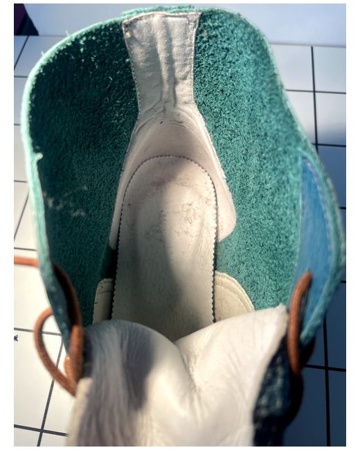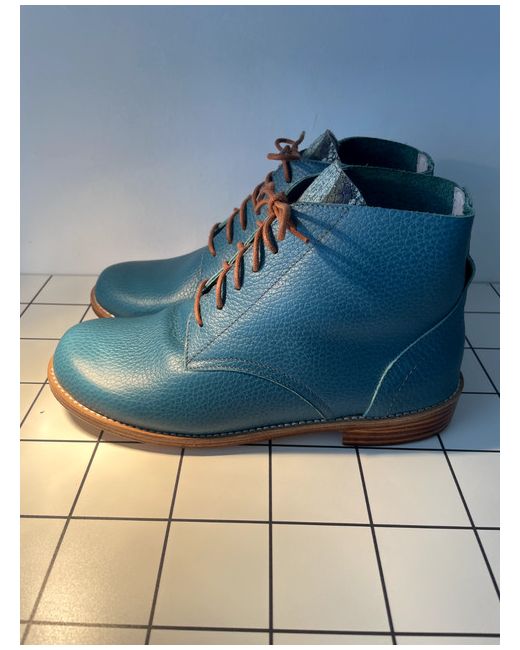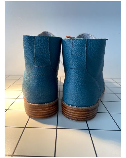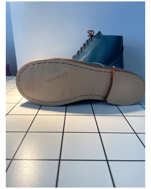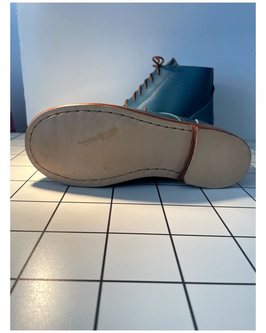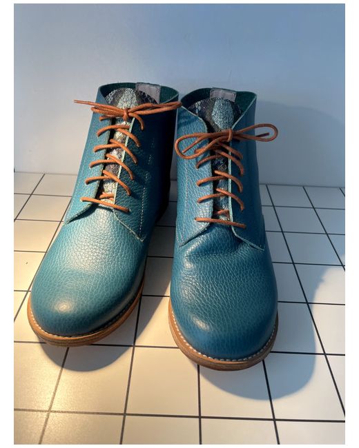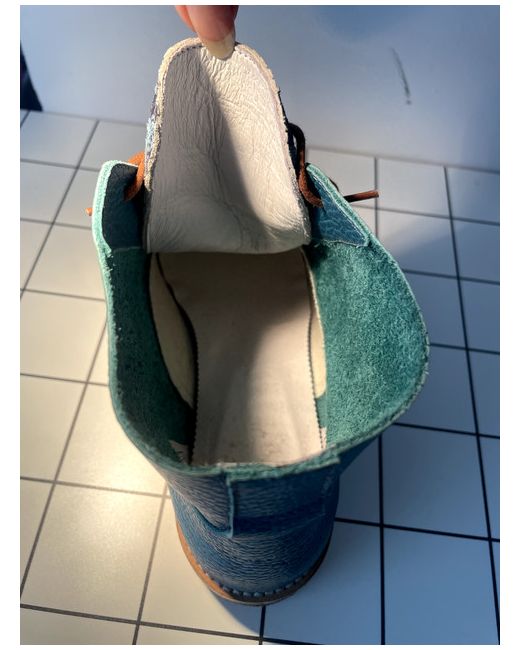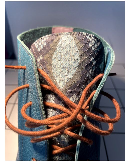 Bespoke boots made by crasftwoman Marina Kazijeva. These shoes are beautifully made with Turquoise leather upper and snakeskin print leather on the tongue. Noone you know will have a pair like this! Size 4.