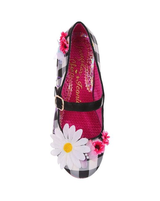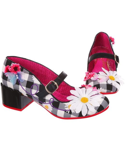 Perfect posies are paired with gorgeous gingham in black and white hues on these fabulous Mary Janes! 3D flowers are dotted around the toe and heel, accented with little butterflies and embroidered flight lines in purple around the edge of the foot!
