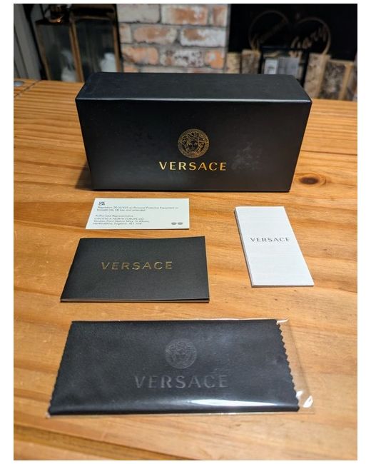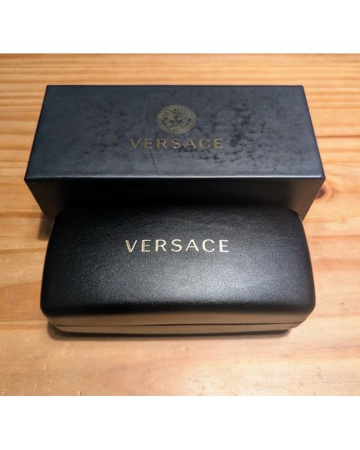 This product is a pair of Versace sunglasses and case, designed specifically for women. The sunglasses feature a stylish gold metal frame with black gradient plastic lenses that offer UV400 protection. Made in Italy, this accessory combines high-quality materials and a sophisticated design, making it a perfect addition to any fashion-forward wardrobe. Perfect for adding a touch of luxury to any outfit, these sunglasses are a must-have for any woman looking to elevate her style.