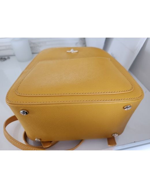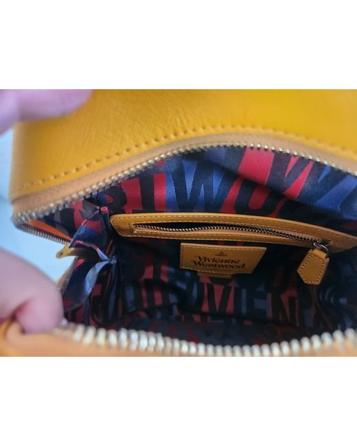 The Vivienne Westwood Backpack is a stylish accessory for women, featuring a small size with a zip closure and adjustable yellow strap. Made from leather with a multicoloured lining, this casual backpack exudes a unique and trendy style. The exterior in a striking yellow colour adds a pop of colour to any outfit, making it a versatile and fashionable choice for everyday use. Perfect for adding a touch of luxury to your wardrobe, this backpack is a must-have for fashion-forward individuals.
