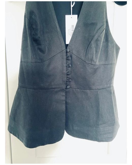 Reformation Rylan Top Black Size 8 RRP £168 sleeveless top with a collared neckline, buttons at the bodice, and a split hem.