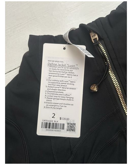 The Lululemon Define Full Length Jacket in Nulu Black/Gold is a stylish and practical outerwear piece designed for active women. Made from 100% Nylon with a blend of fabrics for added comfort, this long-sleeved jacket features a zip closure and is machine washable. Perfect for yoga and other sports activities, it is breathable and offers a full-length fit for a flattering silhouette. The black colour and basic jacket style make it versatile for various occasions, while the Lululemon brand ensures high-quality craftsmanship and durability.