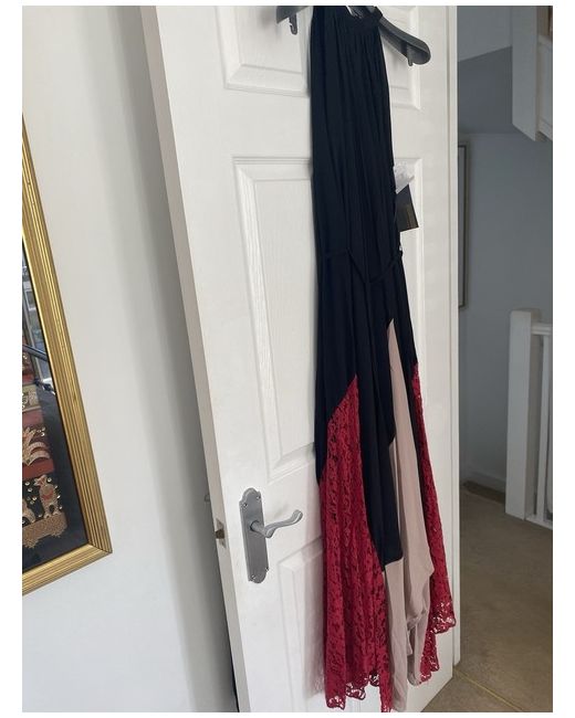 Spectacular maxi dress with multiple layers of fabric and lace panel Insert Self tie belt Can be worn 8-14 £560
