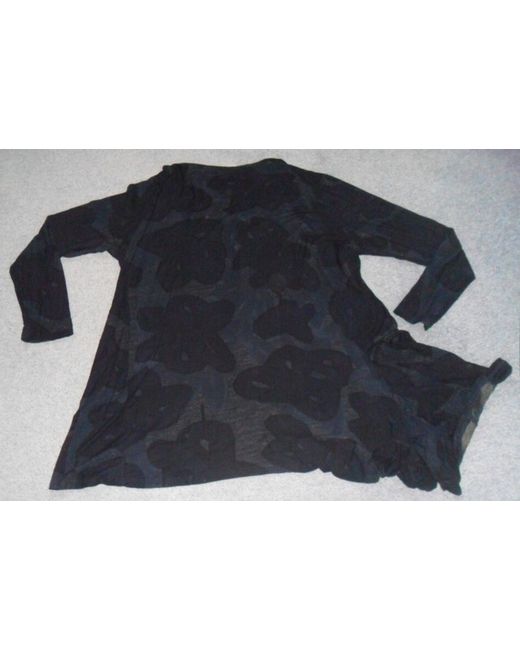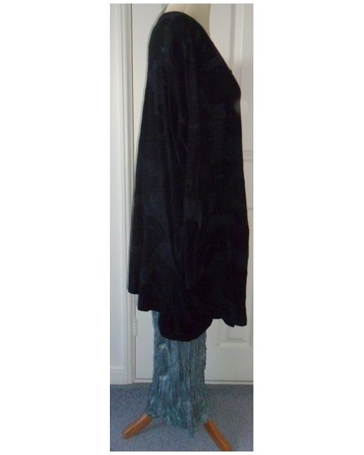 Fabulous tunic from Rundholz Black label. 90% cotton/10% wool in a jersey type fabric, nice and soft, not itchy, has a little bit of stretch. Blue background with a large black flower pattern all over.