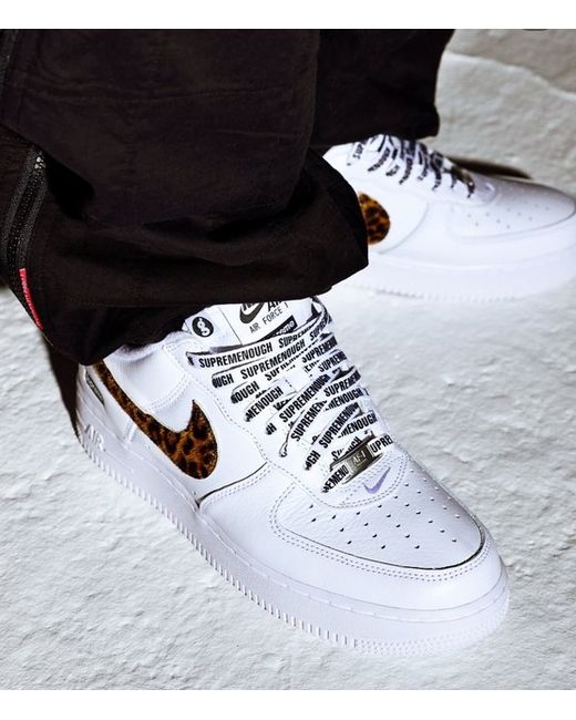 The Supreme Goodenough Air Force 1 in size 9.5UK is a unisex trainer designed for adults. This sneaker, featuring the iconic Air Force theme, comes in a classic white colourway.This Supreme shoe combines style and comfort with its signature brand aesthetics. Perfect for casual wear or as a statement piece for any outfit.