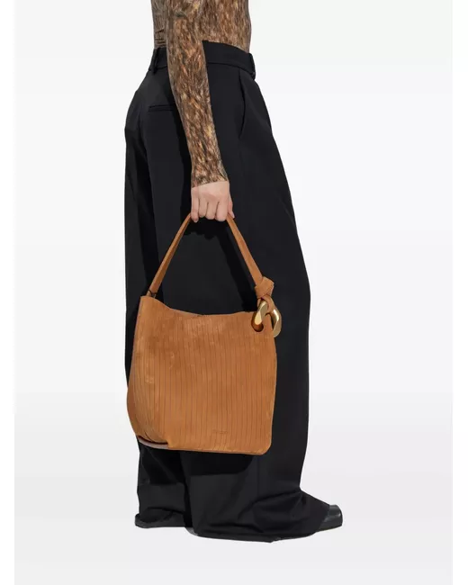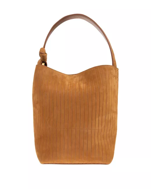 caramel brown two top handles pleated design press-stud fastening main compartment