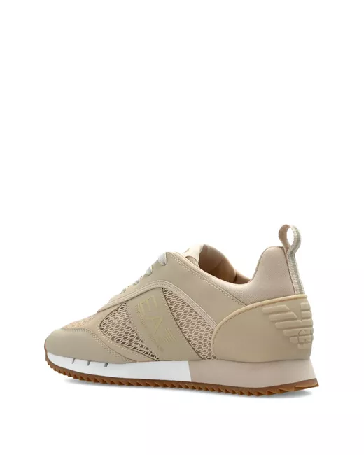 beige front lace-up fastening perforated detailing pull-tab at the heel logo patch at the tongue round toe rubber sole