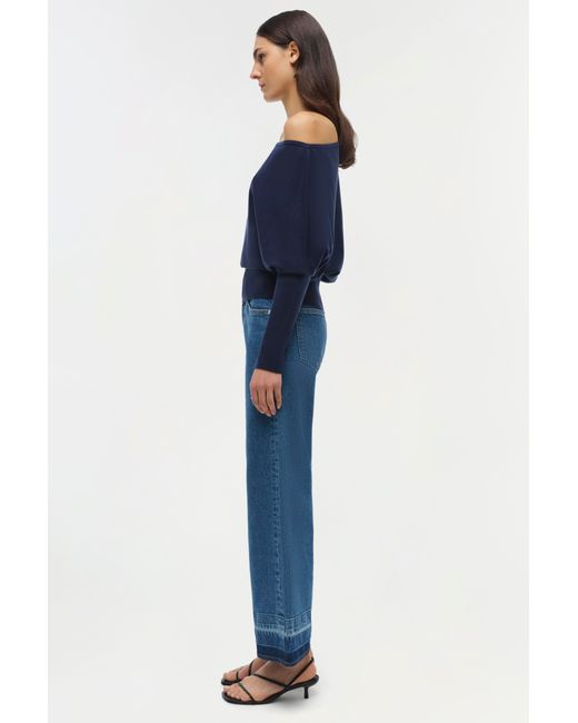 SIGNATURE COLLECTION The Lavina Sweater in Midnight. This draped off-shoulder top features an elegant asymmetric neckline and a relaxed fit. Its sophisticated design adds a touch of modern style to any wardrobe. SIMKHAI Women's Knitted Lavina Sweater in Midnight, Size XS