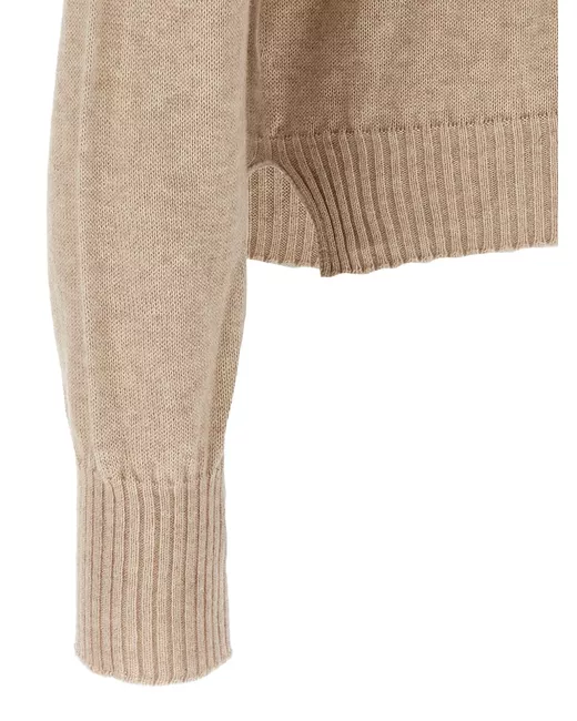 beige ribbed cuffs ribbed hem long sleeves crew neck