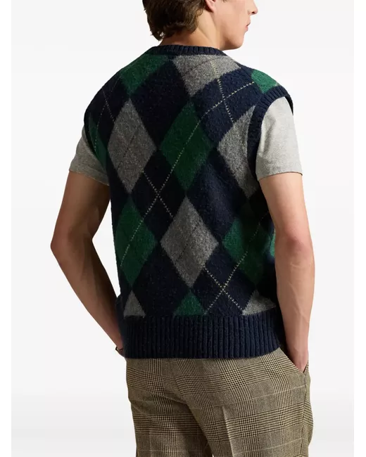 argyle-patterned sleeveless vest