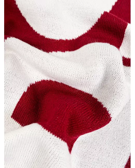 red contrasting white logo design long rectangular shape soft knit construction ideal for layering